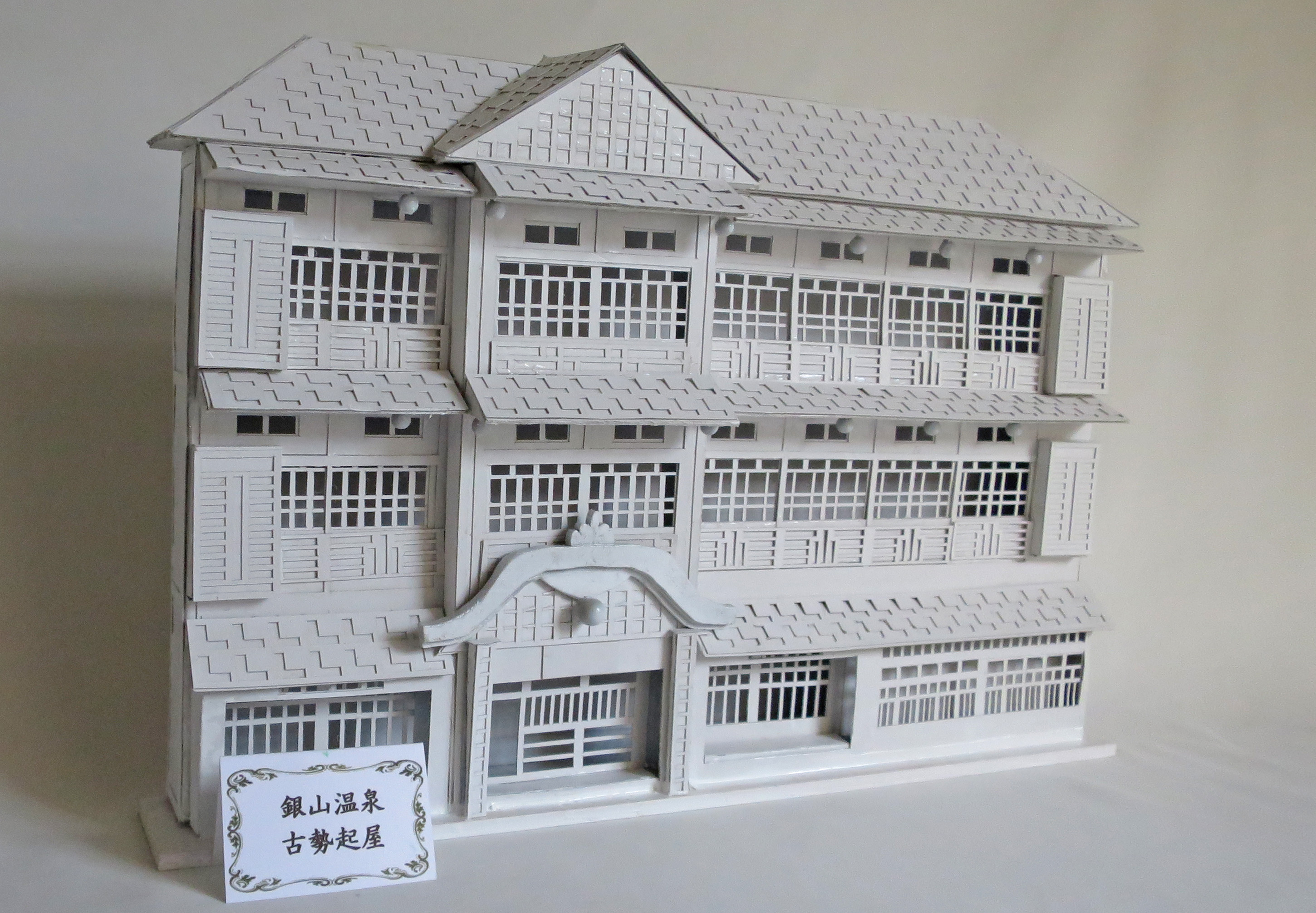 昭和レトロ温泉宿第2作目は「銀山温泉古勢起屋」です。 古勢起屋別館は、山形県尾花沢市・銀山温泉の中心に位置する老舗旅館。大正ロマンの面影を残す温泉街の景観と調和した木造多層構造の建物が特徴で、銀山川沿いの情緒あふれるロケーションを誇ります。 夕暮れにガス灯が灯ることで知られる全国有数の温泉街。古勢起屋別館はその中心部にあり、客室からは川沿いの風景や四季折々の自然を楽しめます。 冬は雪景色、春は新緑、秋は紅葉と、季節ごとの趣が明確です。 制作素材と致しまして、厚紙をベースに3Dプリンター制作部品、プラ棒、プラ板、ヒノキ材などです。サイズは横380mm X 270mm X 厚50mm(2.5次元模型)243gとなっております。 一つ一つ手作りに為、多少の色むら、ずれなどはお許しください。本格的な着色モデルも制作販売させて頂きます。お手元にお届け致すまで2週間程を頂いております。 |